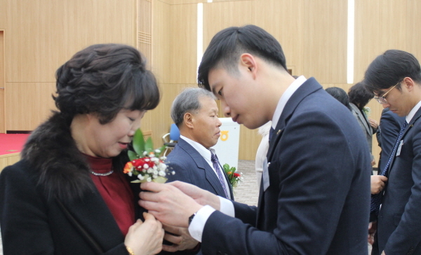 새내기 신규직원들은 미리 준비한 카네이션과 선물, 영상편지를 통해 부모님께 감사와 존경의 뜻을 전했고 부모님들은 신규직원들에게 농협배지를 직접 달아주며 농협은행의 새 가족이 된 것을 축하했다.