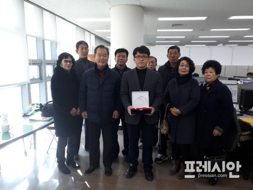 경남 사천시 축동면 예동마을 주민들은 예동 자연재해위험개선지구 정비 사업이 완료 될 수 있도록 힘써 준 시 관계자들에게 감사패를 전달했다.