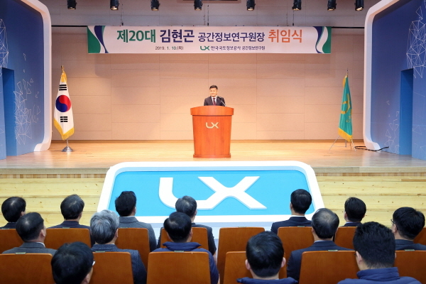 LX공간정보연구원은 10일 전북혁신도시 소재 LX본사에서 최창학 사장과 본사, 연구원 임직원 등 150여 명이 참석한 가운데 김현곤 원장의 취임식을 가졌다.