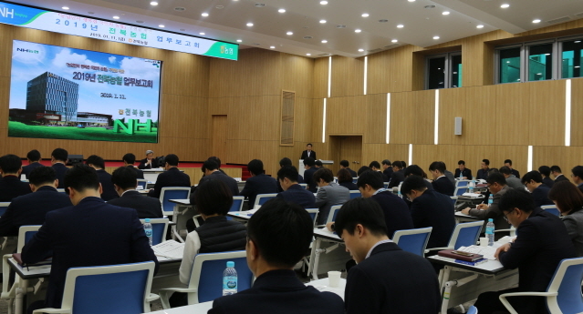 전북농협은 11일 지역본부 대회의실에서 유재도 본부장을 비롯해 시군지부장, 지역본부 직원 등 임직원 60여명이 참석한 가운데 올해의 사업방향에 대한 계획과 실천 방안을 보고하는 ‘2019년 업무보고회’를 가졌다.