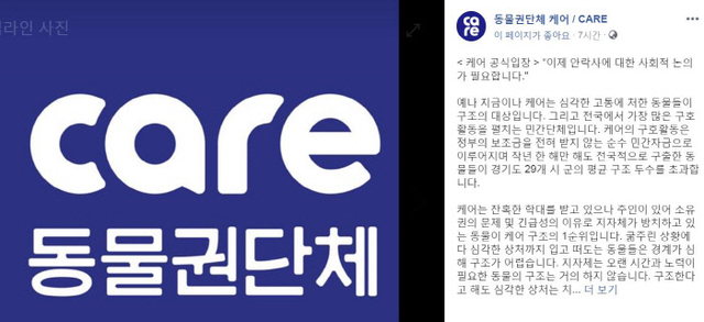 앞서 전직 케어 직원은 지난 11일 "케어가 자신들이 보호하던 동물들을 무더기로 안락사시켰다"고 폭로했다.