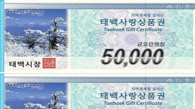 한편, 태백사랑상품권은 지난 1999년 처음 발행한 이후 매년 판매액이 증가하고 있으며 지난해에는 13억 7천만 원의 상품권이 시중에 유통되면서 자영업자 매출 증대 및 골목상권 활성화에도 한몫 하고 있다.