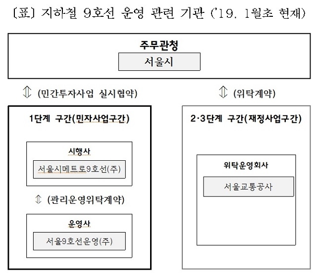 서울 지하철 9호선은 서울시가 서울시메트로9호선에 사업권을 주고, 서울시메트로9호선은 다시 해당 노선 운영을 프랑스계 회사인 서울9호선운영에 위탁하는 구조로 그간 운영돼 왔다.