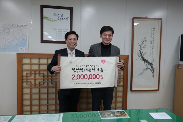 전라남도중소기업진흥원(원장 우천식)이 지난 2018년 공기업·출연기관 부패 방지 시책 최우수기관 포상금 전액을 전남인재육성재단에 기부, 나눔 문화를 실천했다.
