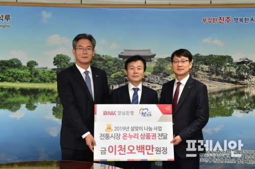 경남 진주시는 22일 BNK경남은행에서 2500만 원 상당의 온누리상품권을 기탁했다.