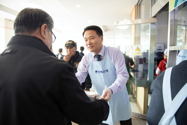 전북은행은 매년 설 명절을 맞이해 지역사회 어르신들과 이웃사랑의 정을 나누기 위해 매년 떡국 나눔 행사를 펼치고 있으며, 임직원이 직접 봉사활동에 참여해 이웃사랑을 몸소 실천하기 위해 노력하고 있다.