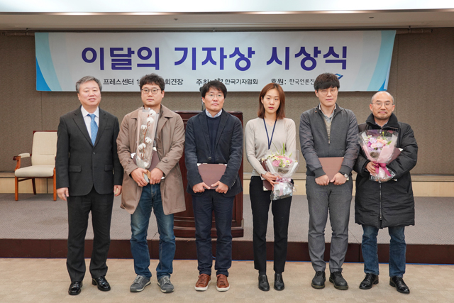 허 기자 등은 '웹하드의 황제, 양진호' 기획 기사로 한국기자협회가 주관하는 제340회 이달의 기자상 신문·통신 부문 수상자로 선정돼 22일 서울 중구 프레스센터에서 상을 수여받았다.