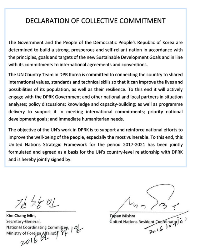 위 문서는 서명한 유엔기구만 이행하는 것이 아니다. 문서를 만들기 위해 공여국의 시민사회와 국가 기구 등이 모두 협의를 마쳤다. 따라서 이는 단순히 유엔 기구들만의 개발 목표가 아니라 북한과 개발 협력이나 인도지원을 재개할 때 시작점이 될 수 있는 문서라고 볼 수 있다.