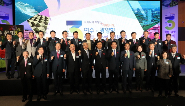 여수·광양항 물동량 3억t 달성 축하 및 오는 2025년 3억 7천만t 달성 비전 선포식이 24일 광양 월드마린센터 국제회의장에서 열렸다.