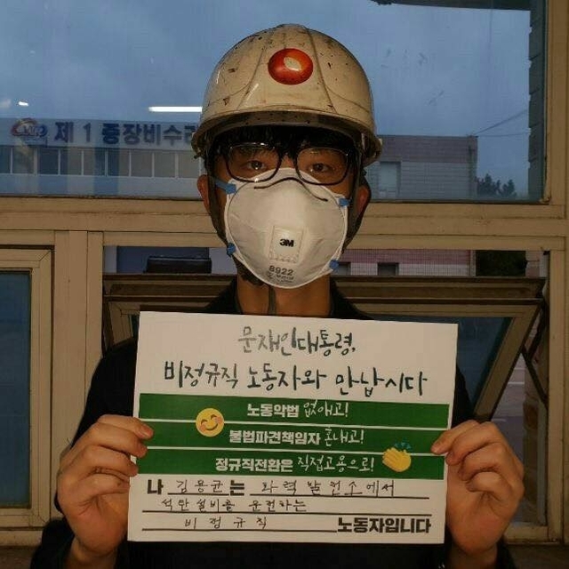 고(故) 김용균 씨는 태안 화력발전소 하청노동자로, 석탄 운송 설비컨베이어 작업을 하던 중 기계장치에 몸이 끼여 지난해 12월 11일 24살의 나이에 사망했다.