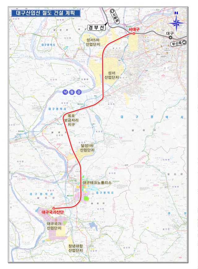대구산업선 철도는 경부선 서대구 고속철도역 예정지에서 국가산업단지를 연결하는 연장 34.2km의 여객 및 화물열차 운행 일반철도로 인근의 경남 창녕군 대합일반산업단지를 영향권에 두고 있는 대구의 산업 대동맥 역할을 하게 된다.