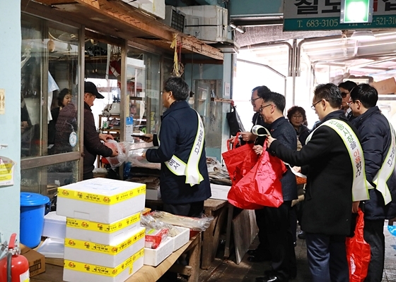 경북 영양군이 29일 설 명절을 맞아 영양전통시장 일대에서 전통시장 장보기 행사를 갖고, 지역경제 살리기에 앞장섰다.