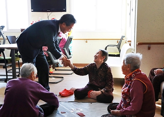 ▲오도창 영양군수가 30일 사회복지시설 위문을 통해 어르신과 인사를 나누고 있다. ⓒ경북 영양군