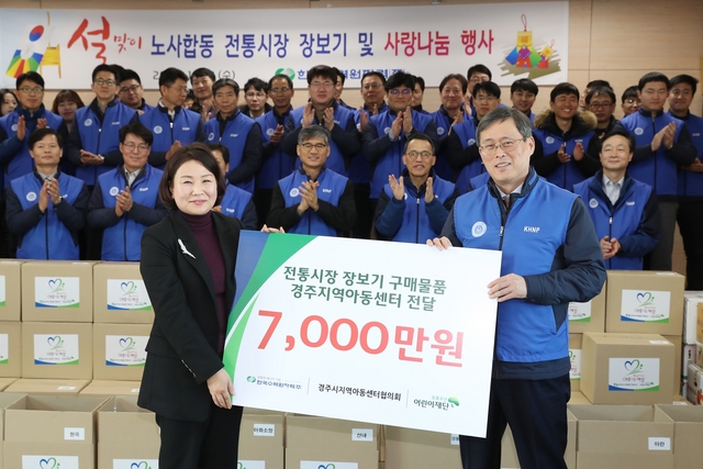 이날 행사에서 정재훈 사장과 김병기 중앙노조위원장 등 임직원 100여명은 경주의 대표적인 전통시장인 성동시장과 중앙시장에서 온누리 상품권으로 쌀, 청과류, 건어물, 생필품 등을 구매했다.