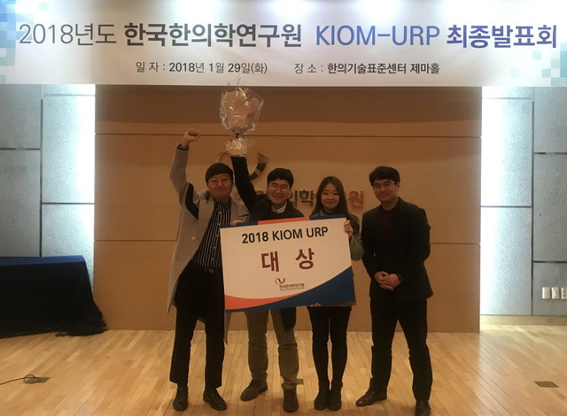 상지대학교(총장 정대화) 한의학과 학생들이 지난 29일 한국한의학연구원에서 주최하는 ‘2018년도 KIOM URP(한국한의학연구원 학부생 연구 프로그램)’ 최종보고회에서 대상을 수상했다고 31일 밝혔다.