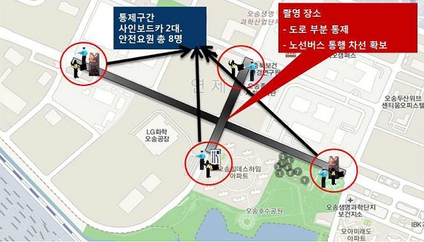 이로 인해 촬영이 이뤄지는 시간동안 오송읍 연제리 874번지 일대의 도로는 노선버스 통행 차선을 제외한 부분 통제된다.