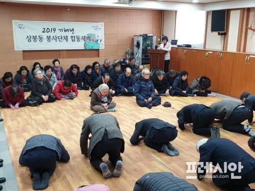 경남 진주시 상봉동 단체장협의회는 14일 상봉동행정복지센터 회의실에서 기해년 지신밟기 출정식과 더불어 지역 원로 어르신들과 상봉동 봉사단체원들과 새해맞이 합동세배 행사를 개최했다.