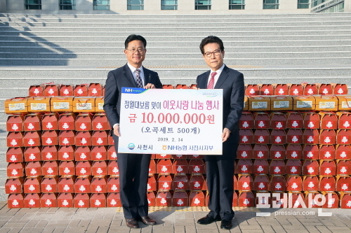 NH농협은행 사천시지부는 지난 14일 사천시청을 방문해 어려운 이웃에게 전달해달라며 오곡세트 500포(1천만원 상당)를 기탁했다.