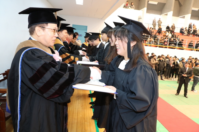 2018학년도 전기 상지대학교 학위수여식에서 학사 1229명(누적 4만7611명), 박사 및 석사 54명이 학위를 수여받았다.