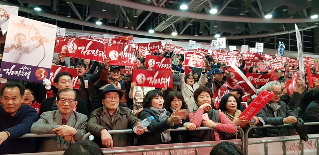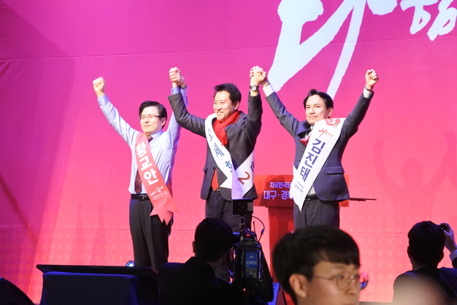 마지막으로 무대에 오른 황교안 후보는 먼저 큰 절로 인사를 한 뒤 “문재인 정권 들어서 좋아진 사람 있느냐”고 지역 정서를 들고는 “총선에서 압승하기 위해서는 새 인물이 필요하다. 나는 자유한국당을 구하기 위해서 한국당에 들어왔다”며 지지를 호소했다.