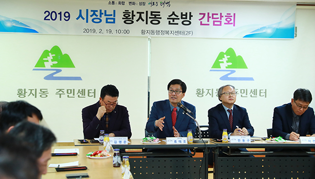 류태호 시장과 간부공무원들은 순방 첫날인 이날, 황지동을 시작으로 황연동과 삼수동, 상장동 주민들을 직접 만나 의견을 청취한데 이어 오는 20일 문곡소도동과 장성동, 구문소동, 철암동을 차례로 방문해 주민 의견을 수렴할 예정이다.