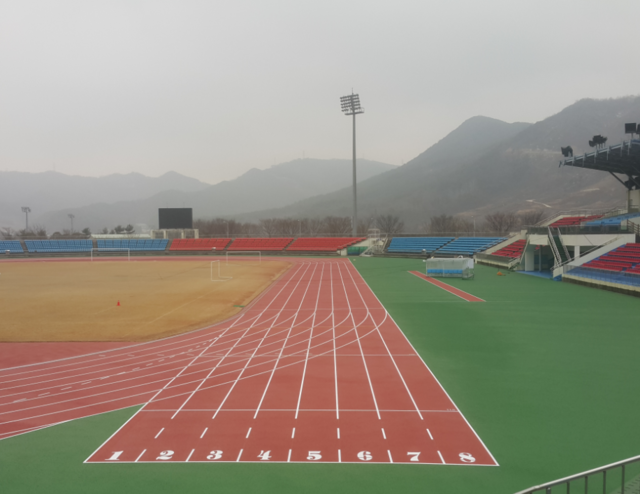 전북 고창군이 공설운동장의 육상트랙을 친환경 트랙으로 새단장을 마쳤다.