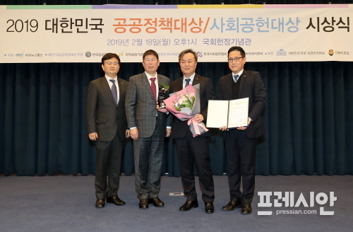 한국남동발전 김봉철 상임감사위원이 지난 18일 국회 헌정기념관에서 열린 ‘2019 대한민국 공공정책 대상’에 참석해 내부감사 부문 대상을 수상했다.