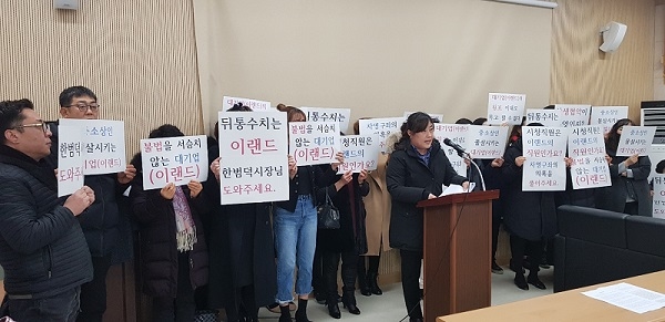 충북 청주시 흥덕구 가경동의 드림플러스의 상인회가 대규모 상가를 소유하고 있는 이랜드리테일에 대해 “탈법적 장악음모를 중단하라”고 촉구했다.