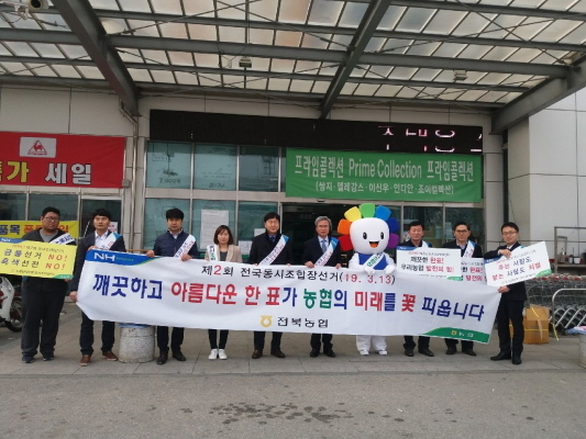 이날 농협중앙회 전북지역본부, 농협 고창군지부, 고창농협, 고창군 선거관리위원회 임직원 20여명이 참석한 가운데 고창농협 하나로 마트를 찾은 조합원과 고객들을 대상으로 홍보자료를 배포하고 '제2회 전국동시조합장선거'에서 '조합원 유권자의 깨끗한 한 표의 힘은 지역농업발전과 우리 농협 발전의 힘' 임을 홍보했다.