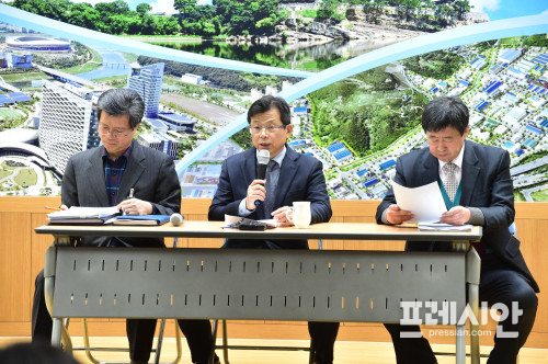 ▲27일 진주시는 27일 시청 브리핑룸에서 기자회견을 열고 지난 25일자 모 방송국의 삼성 교통 파업관련 뉴스 보도에 대해 정정보도를 요구하고 있다.ⓒ진주시