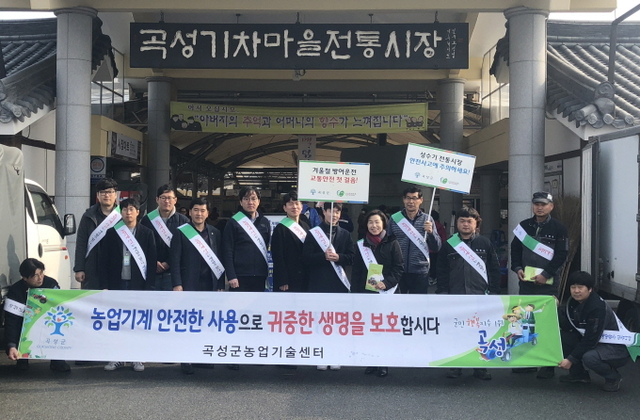 곡성군(군수 유근기)이 농번기철을 앞두고 농업기계 사용이 증가됨에 따라 안전사고예방을 위해 28일(목) 기차마을 전통시장에서 농기계 안전사고 예방 캠페인을 실시했다.