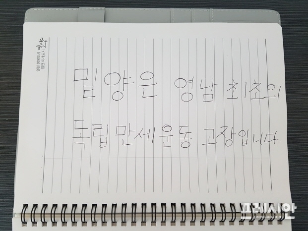 ▲경남 밀양시 의회 이현우 의원이 밀양은 영남 최초의 독립만세운동 고장입니다. 손 글씨 릴레이를 펼쳤다.ⓒ이현우 밀양시 의원 페이스북