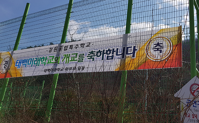 ▲태백미래학교 공립전환 환영 현수막. ⓒ프레시안