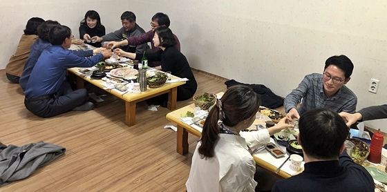 ▲영양군 관계자들이 지난 4일 직원석회 이후 석식 자리를 진행하고 있다. ⓒ경북 영양군