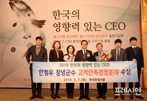 한정우 군수는 지방자치단체장으로서 고객 만족경영 부문의 공로를 인정받아 수상자가 됐다.