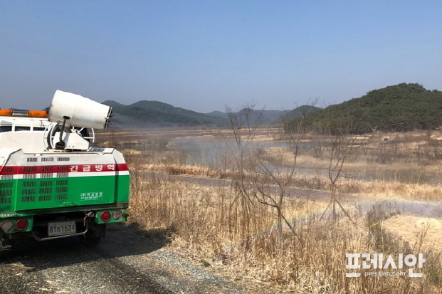 창녕군은 이날 오전부터 자체 보유 차량과 축협 공동방제단 차량 지원을 받아 우포늪 전체를 대상으로 긴급 소독과 168 농가를 대상으로 이상 유무를 확인중이다.