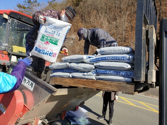 올해 지원 대상지역은 성전면, 작천면, 병영면, 옴천면으로 면적 2,540ha에 4,046포, 5억 6천5백만원을 투입해 영농기 이전인 3월까지 보급을 마무리할 계획이다. 공동살포는 지역농협 주관으로 살포 구획을 지정해 살포하고 있으며, 공동살포의 경우 포대당 군 보조 400원, 농협 200원, 농업인 200원을 공동살포비로 지원한다.