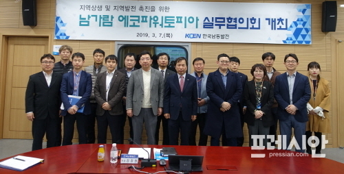 한국남동발전 진주 본사 대회의실에서 지역상생과 지역발전을 촉진하고자 시행하는 남가람 에코파워토피아 프로젝트의 실무협의회를 가졌다고 10일 밝혔다.