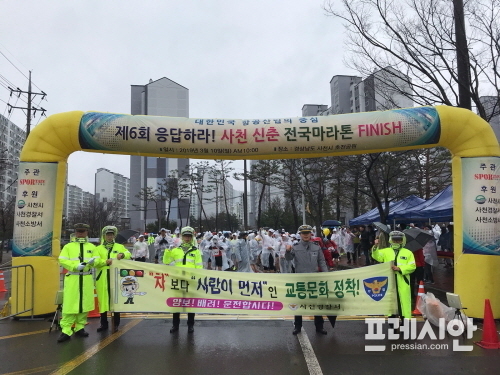 경남 사천경찰서는 ‘제6회 응답하라 사천 신춘마라톤 대회'에서 참가자 2000여명을 대상으로 어린이, 노인등 교통약자 보호 및 보행자 사고 예방에 대한 교통캠페인을 실시했다고 11일 밝혔다.