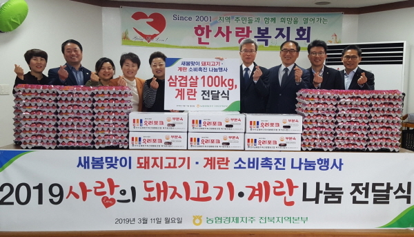 전북농협·양돈·양계농가 '돼지고기·계란' 나눔
