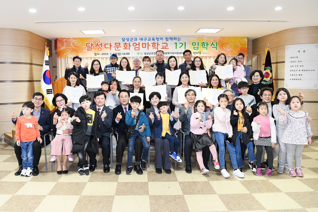 지방자치단체로는 전국 최초로 ‘달성다문화엄마학교’입학식이 10일 달성군 화원읍 행정복지센터에서 학생인 다문화가정 엄마 12명과 김문오 달성군수, 강은희 대구시교육감 등 관계자들이 참석한 가운데 열렸다.