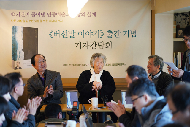 백 소장의 나이(1932년생)를 고려하면, 그의 마지막 작품이 될 가능성이 큰 <버선발 이야기>의 출간을 기념해 13일 백 소장과 이 책을 지지하는 사람들이 주최한 기자간담회가 서울 종로구 학림커피에서 열렸다.