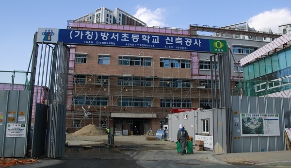 새 학기가 시작됐지만 공사 지연으로 인해 학생들이 인근학교로 통학하는 불편을 겪고 있는 충북 청주시 방서지구 단재초등학교가 오는 5월 정상 입주할 것으로 전망된다.<2018년 9월13일, 세종충청면>