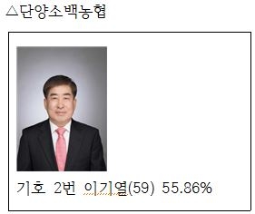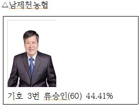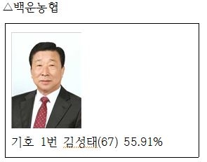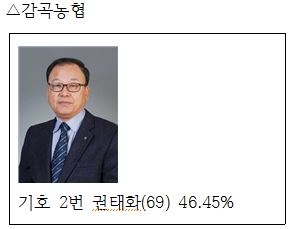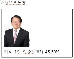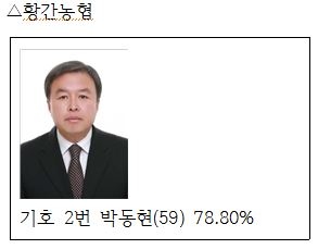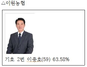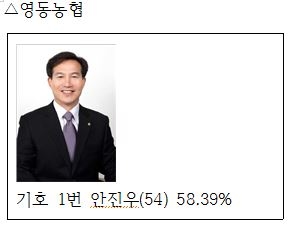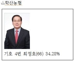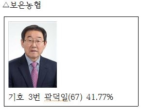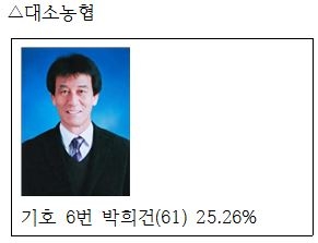 (조합명/ 기호/ 이름/ 나이/ 득표율, 개표결과순)