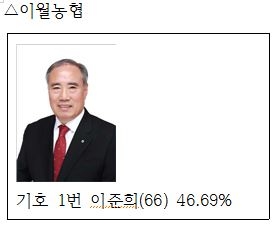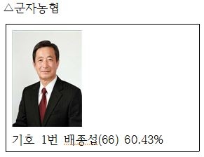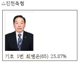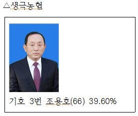 (조합명/ 기호/ 이름/ 득표율 순, 개표결과순)