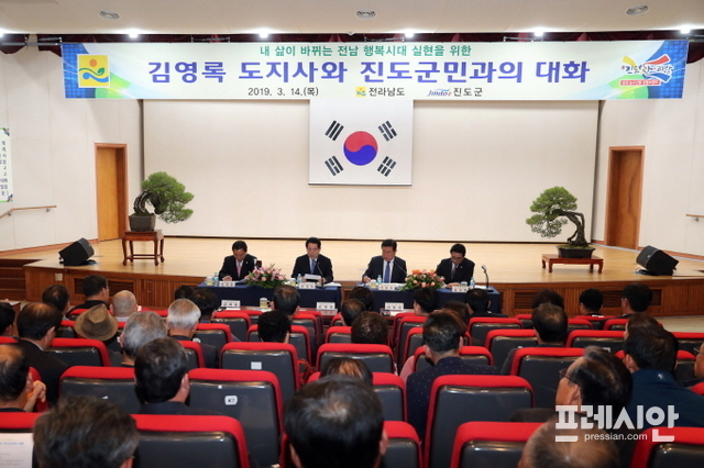 또한 국립현대미술관 진도관 유치와 관련해선 “지난해 최종 예산 심의에서 아깝게 탈락했는데 내년 예산이 반영되도록 정부에 건의하겠다”고 말했다. ‘겨울 대파 수급 안정대책’, ‘서해안 철도의 진도 연장’, ‘국도 18호선 진도-팽목 간 도로 4차선 확장’ 등 주민 건의에 대해서도 긍정적으로 검토하겠다고 답변했다.
