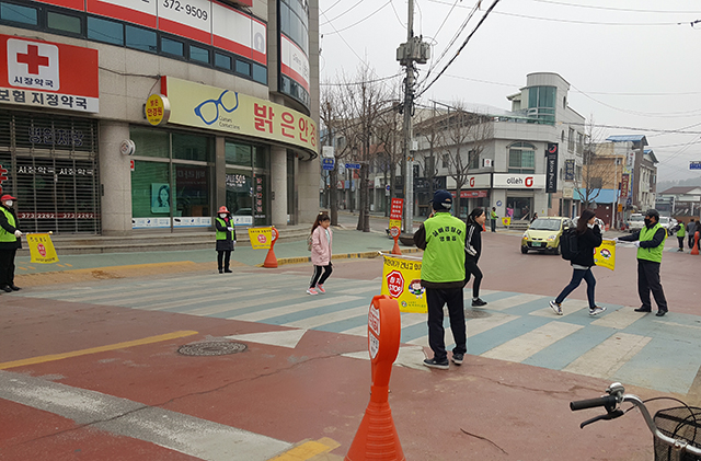 아동의 ‘안전한 등굣길 지원을 위해’ 관내 초등학교(내성초, 봉래초, 영월초) 앞 횡단보도에서 매일 28명씩 총 56명의 어르신들이 근무한다.