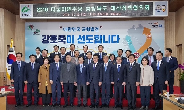 더불어민주당과 충북도가 예산정책협의회를 열고 내년도 정부예산에 충북의 현안사업 과련 예산이 적극 반영될 수 있도록 힘을 모으기로 했다.
