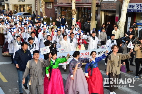 지난 17일 오후 6시 100년 전 경남도청이 있었던 진주에서 다채로운 삼일만세운동 재현행사가 펼쳐졌다.