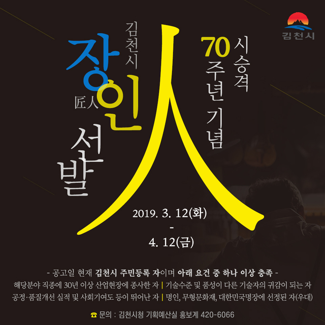 ▲김천시 市 승격 70주년 기념 김천 장인 (匠人) 선발 안내 포스터 ⓒ김천시